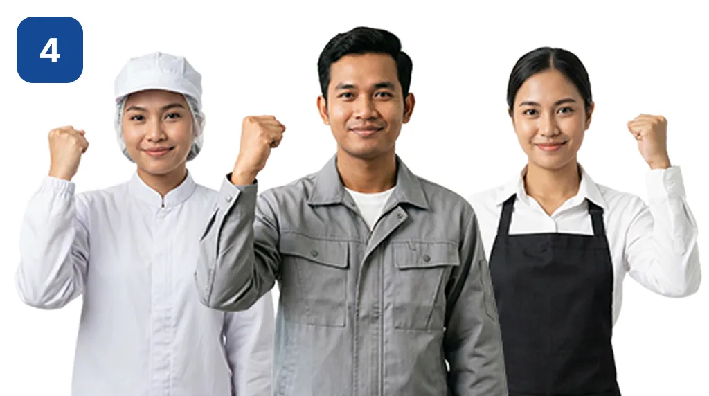 製造業、食品工場、清掃、外食業など、現場で必要なスキルをしっかり理解している人材が多数在籍。現場のルールやマナーに慣れており、チームで円滑にコミュニケーションを取りながら効率的に作業を進められます。意欲的に仕事に取り組み、安定した勤務が期待できるのが特徴です。